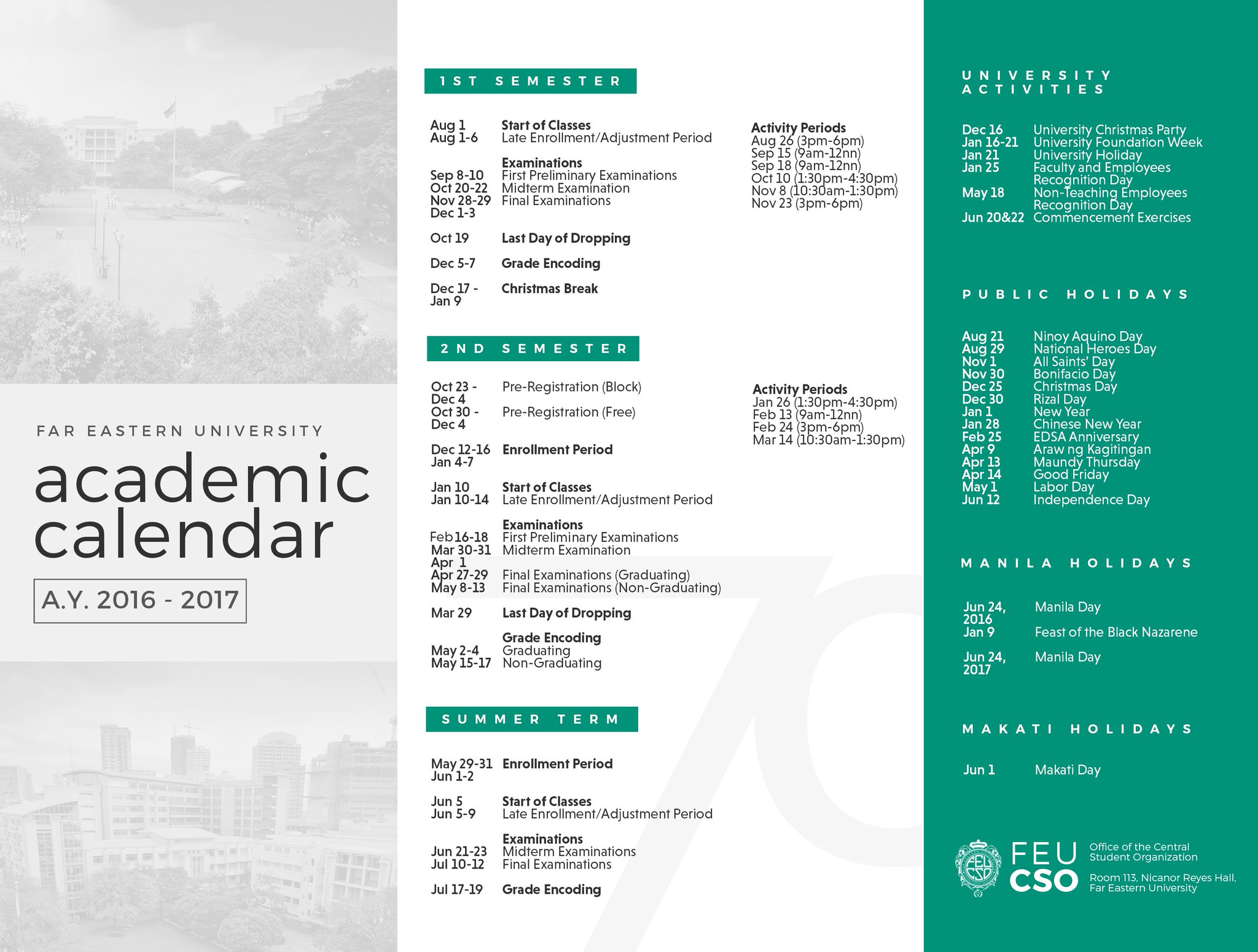OneFEU on X: “The Far Eastern University Calendar of Activities