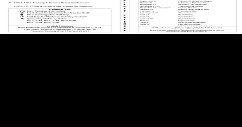 2019 2020 School Year Calendar Pittsfield Public Schools